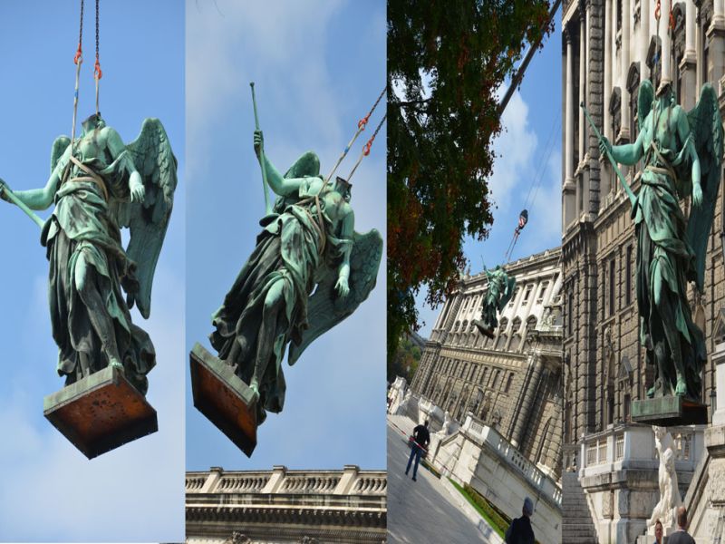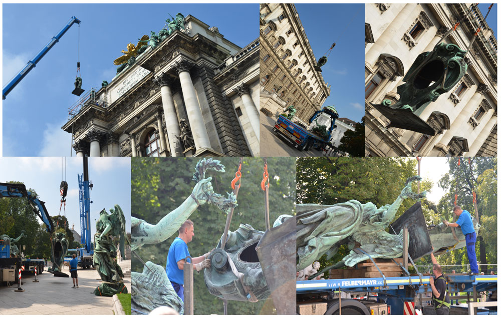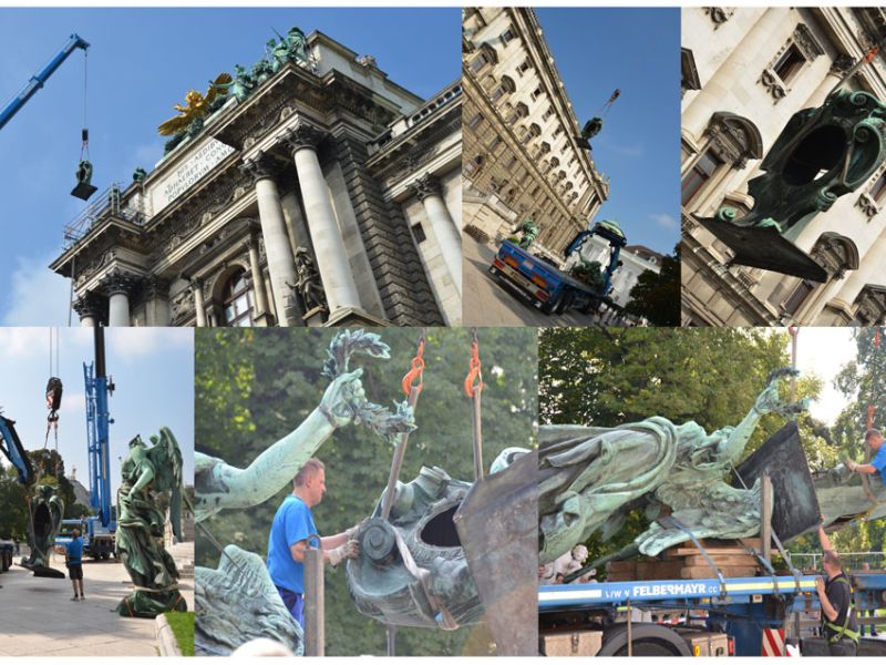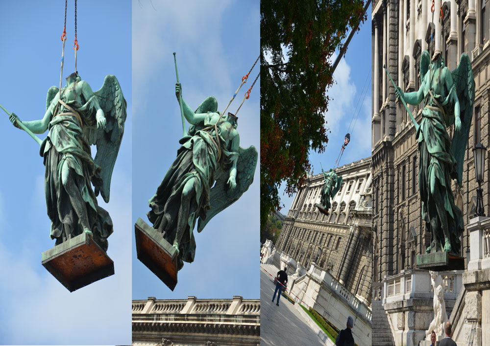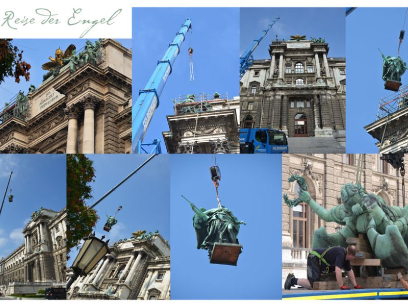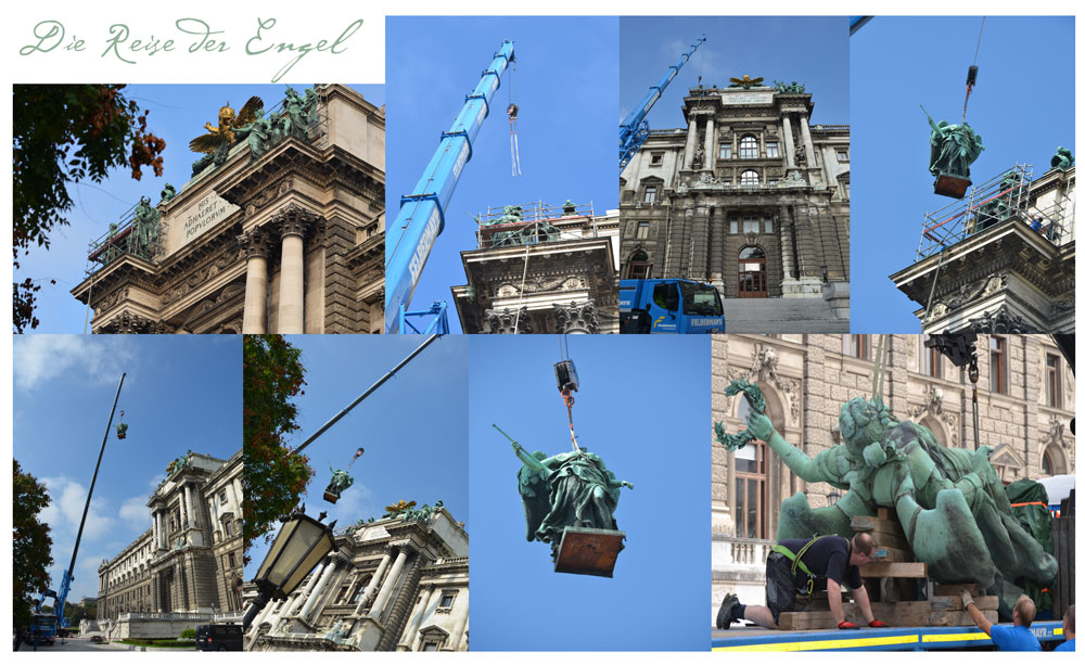 Wer kennt sie nicht, die Hofburg, die einst als Residenz der Habsburger diente und bis heute Amtssitz unserer Bundespräsidenten ist. Während der Ringstraßenzeit wurde die neue Burg erbaut, wo sich unsere heutigen Hauptdarsteller befinden … die Engel der Hofburg. Die knapp 5 Meter großen Statuen zieren die Residenz von knapp 50 Meter Höhe aus. Am 08. September 2014 wurden diese gigantischen und beeindruckenden Skulpturen mit einem umfangreichen und hoch professionellen Aufwand von Ihrem Ausblick herab geflogen um sich auf die Reise zur Restaurierung zu machen. Die Engel werden Anfang November in neuem Glanz erstrahlen und wieder auf Ihr Podest gestellt. Als langjähriger Meisterbetrieb in Sachen Guszhandwerk, Restauration, Formgusz und unserer Liebe zu Detailtreue sind wir als der Partner in ganz Österreich bekannt und geschätzt. Begleiten Sie die Engel gemeinsam mit uns auf Ihrer Reise …